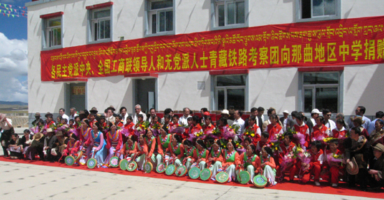 列車進(jìn)入西藏自治區(qū)境內(nèi)以后,考察團(tuán)一行考察了那曲火車站并向那曲地區(qū)中學(xué)捐贈了價(jià)值12萬元的電腦。