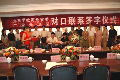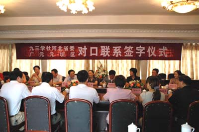 在“九廣合作”20周年紀念活動期間,九三學社河北省委與廣元市元壩區(qū)簽定了對口合作協(xié)議。賀鏗副主席出席合作簽字儀式并講話。活動期間,九三學社河北省委組織專家赴廣元免費為貧困家庭的50例白內障患者作了復明手術。這一善舉受到群眾熱烈歡迎。一位重見光明的老大爺激動地拉著醫(yī)生的手久久不愿松開,連聲說“感謝共產黨、感謝九三學社,我們見到光明了”。