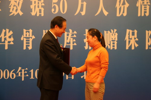 會上,中國紅十字會會長彭珮云向第500例捐獻者,來自山西的王闊頒發(fā)了“造血干細胞捐獻者榮譽證書”。中華骨髓庫與中國平安公司簽署了2007年至2010年捐贈保險續(xù)簽協(xié)議;聘請中國短道速滑冬奧冠軍楊揚為“愛心大使”,演藝界明星宋佳為“形象代言人”。