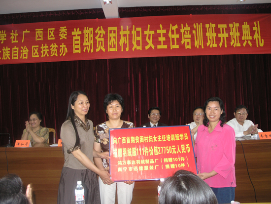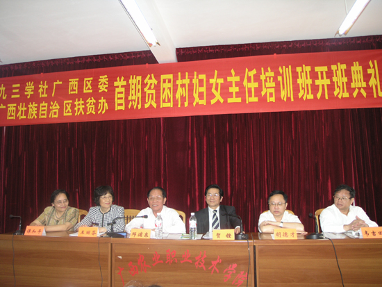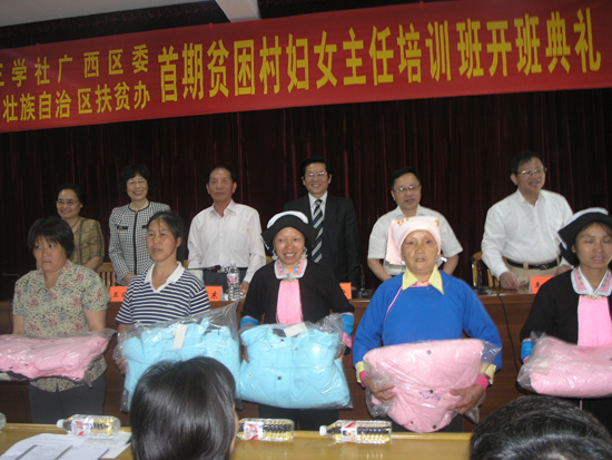 為了進(jìn)一步加快扶貧開發(fā)和社會(huì)主義新農(nóng)村建設(shè),切實(shí)幫助貧困地區(qū)廣大婦女提高參與發(fā)展的能力,學(xué)到一些實(shí)用技術(shù)和知識(shí),增加收入,九三學(xué)社中央委托九三學(xué)社廣西區(qū)委和廣西區(qū)扶貧辦在南寧聯(lián)合舉辦為期10天的貧困村婦女主任培訓(xùn)班。