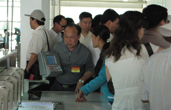 當(dāng)天下午,考察團(tuán)一行聽取了青藏鐵路公司關(guān)于青藏鐵路建設(shè)和運營情況的匯報,并舉行了向青藏鐵路公司贈送牌匾和慰問品儀式。在青海期間,考察團(tuán)一行還先后考察了青海鹽湖集團(tuán)百萬噸項目、西寧經(jīng)濟(jì)技術(shù)開發(fā)區(qū)和湟中縣、伊佳民族服飾有限公司和塔爾寺,在格爾木舉行了向格爾木市民族中學(xué)贈送電腦儀式。