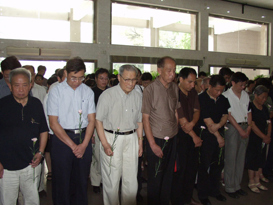 7月22日上午,在上海龍華殯儀館禮堂舉行了殷之文院士遺體告別儀式。殷之文院士逝世后,中共中央總書記、國家主席胡錦濤,中共中央政治局常委、國務院總理溫家寶,原中共中央政治局常委、國務院總理朱镕基發(fā)來唁電。原中共中央總書記、國家主席江澤民,中共中央政治局委員、中共上海市委書記陳良宇,九三學社中央副主席、九三學社上海市委主委謝麗娟送來花圈,對殷之文院士的逝世表示沉痛哀悼,并向其親屬致以親切問候。九三學社上海市委副主委褚君浩、秘書長沈潔參加了殷之文院士遺體告別儀式。