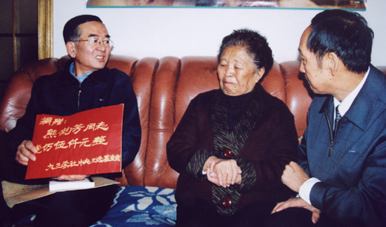 這一日,九三學(xué)社王選關(guān)懷基金辦公室收到這樣一封感謝信,信中寫道:“今天,我懷著激動(dòng)的心情寫這封信。上個(gè)世紀(jì)五十年代,剛剛大學(xué)畢業(yè)的我支邊從云南省到了內(nèi)蒙古自治區(qū)呼和浩特市,在內(nèi)蒙古工作生活五十多年了。年輕的時(shí)候,我努力工作,追求進(jìn)步,不計(jì)較個(gè)人得失。……我喪偶多年,近幾年身體每況愈下,微薄的退休金入不敷出,每年冬季取暖費(fèi)都交不起,加之重病纏身,經(jīng)濟(jì)困難,甚感老境凄涼,心灰意懶。今天,當(dāng)我接過沉甸甸的1.5萬元資助款,我真是百感交集,不知說什么好,不知用什么語言來表達(dá)我感激和高興的心情,表達(dá)我心里體會(huì)到的溫暖。……前不久,我住院做腸息肉手術(shù),因承擔(dān)不起住院費(fèi)用,沒有徹底治愈就出院了,醫(yī)藥費(fèi)都是向親友借錢支付的。……今天接到王選關(guān)懷基金1.5萬元的資助,現(xiàn)在正是我最需要的時(shí)候,真是雪中送炭啊!我衷心感謝九三學(xué)社組織,感謝王選關(guān)懷基金,感謝為了我的事情付出勞動(dòng)的所有社員們。謝謝你們!我得到的不僅是經(jīng)濟(jì)的幫助,還有生活的信心,今后我會(huì)鼓起勇氣,樂觀地生活,希望還能為九三學(xué)社組織盡一份老社員的綿薄之力。”這封情真意切、感人肺腑的感謝信出自76歲高齡的內(nèi)蒙社員熊韻芳之手。老人從25歲到內(nèi)蒙古支邊,把青春和汗水灑在了祖國的邊陲。現(xiàn)退休在家,每月只領(lǐng)600元的退休金,本人患有心臟病、高血壓、糖尿病等多種疾病,因常年交不起電費(fèi)、暖氣費(fèi),電燈根本不敢點(diǎn),冬天暖氣也通不上,生活非常困苦。九三學(xué)社內(nèi)蒙古區(qū)委和呼和浩特市委領(lǐng)導(dǎo)多次到家中看望她,當(dāng)?shù)弥中g(shù)未愈就出院的情況時(shí),九三學(xué)社呼和浩特市委領(lǐng)導(dǎo)又專門從社員中安排了一位外科醫(yī)生上門為她的傷口換藥。特別是這次九三學(xué)社內(nèi)蒙區(qū)委副主委林琳等一行人冒著嚴(yán)寒來到家中看望并慰問她,將九三學(xué)社王選關(guān)懷基金資助款和九三學(xué)社中央主席、九三學(xué)社王選關(guān)懷基金理事長韓啟德的慰問信轉(zhuǎn)交給她時(shí),老人眼含熱淚,激動(dòng)不已,連連表示得到的不僅是經(jīng)濟(jì)上的幫助,更是鼓起了生活的信心,九三學(xué)社組織的關(guān)懷和九三學(xué)社大家庭的溫暖在老人心中燃起了希望之火。