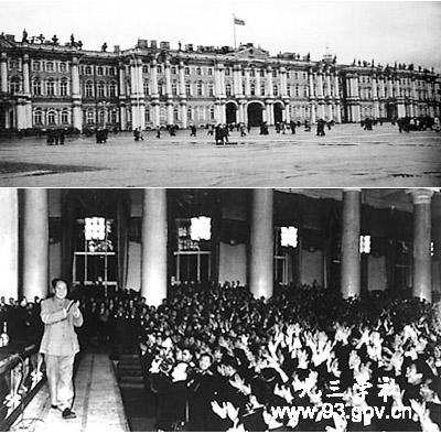 1957年11月17日晚6時許,在列寧(今麻雀山)莫斯科大學(xué)禮堂,毛澤東主席率中央代表團(tuán)參加在莫斯科舉行的十月革命40周年慶祝大會間隙,帶著黨和政府的關(guān)懷、祖國人民的囑托來到3000多名中國留蘇學(xué)生、實習(xí)生中間,發(fā)表了著名講話:“世界是你們的,也是我們的,但是歸根結(jié)底是你們的。你們青年人朝氣蓬勃,正在興旺時期,好像早晨八九點(diǎn)鐘的太陽。希望寄托在你們身上。”
