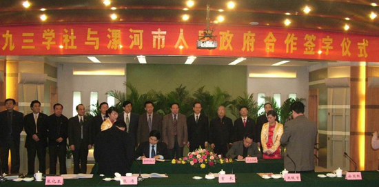 在九三學社中央、九三學社河南省委和中共漯河市委市政府的共同努力下,經(jīng)過精心籌備,2005年3月26日,“九漯合作”正式啟動。九漯合作最大特點是:以構(gòu)建“中國食品城”為工作重點,把九三學社的科技優(yōu)勢和漯河的產(chǎn)業(yè)優(yōu)勢結(jié)合起來,實行強強聯(lián)合,以推動漯河的經(jīng)濟社會發(fā)展為目的。