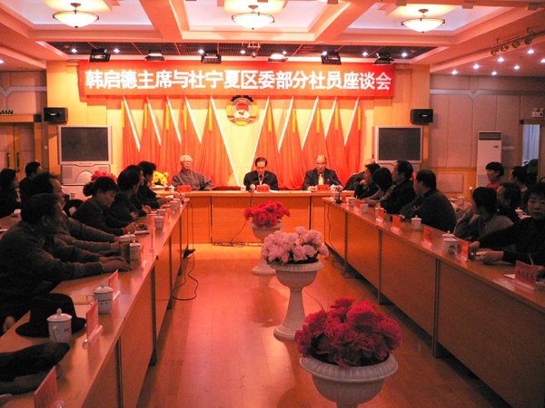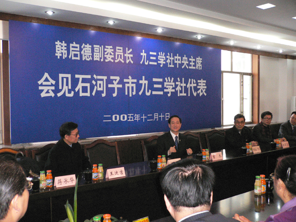 隆冬的西北,寒風(fēng)凜冽。12月9日至13日,全國人大常委會(huì)副委員長、九三學(xué)社中央主席韓啟德在新疆、寧夏考察期間,不顧連日旅途勞頓,冒著零下20度的嚴(yán)寒,專程到九三學(xué)社新疆區(qū)委、九三學(xué)社寧夏區(qū)委和九三學(xué)社石河子市委分別看望九三學(xué)社社員代表,并與他們親切座談。當(dāng)韓啟德的手與社員的手握在一起時(shí),那種心心相連一見如故的氣氛十分感人。在聽取了九三學(xué)社新疆區(qū)委、寧夏區(qū)委的工作匯報(bào)和社員代表的發(fā)言后,韓啟德充分肯定了九三學(xué)社新疆區(qū)委、九三學(xué)社寧夏區(qū)委近年來在參政議政、民主監(jiān)督、社會(huì)服務(wù)和自身建設(shè)等方面取得的成績。他說,新疆區(qū)委和寧夏區(qū)委在西部相對(duì)艱苦的條件下,克服困難,積極主動(dòng)開展工作,提出了許多切合當(dāng)?shù)貙?shí)際情況,有見地有價(jià)值的建議,經(jīng)濟(jì)與社會(huì)發(fā)展做出了貢獻(xiàn),受到中共自治區(qū)黨委和政府的重視,贏得了社會(huì)好評(píng),增強(qiáng)了組織凝聚力,提高了組織影響力。