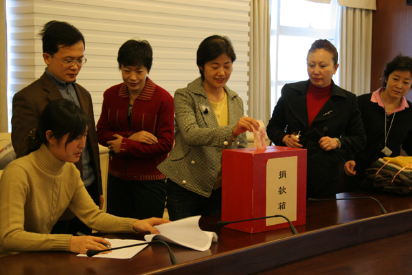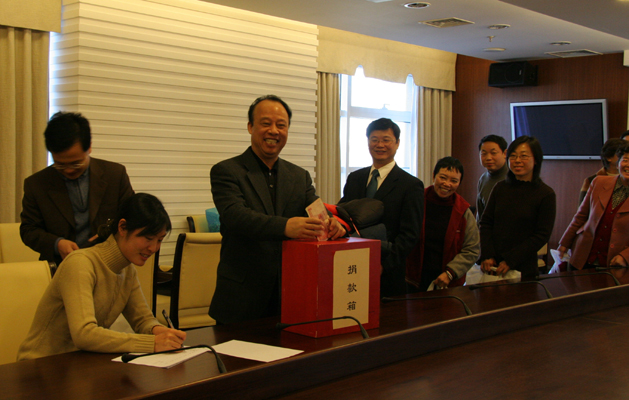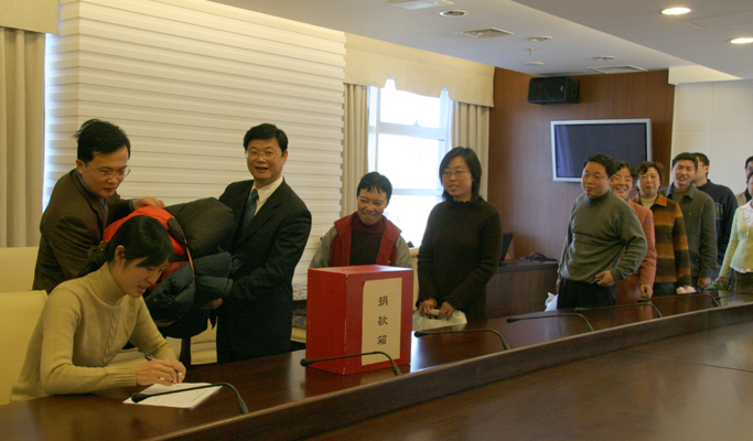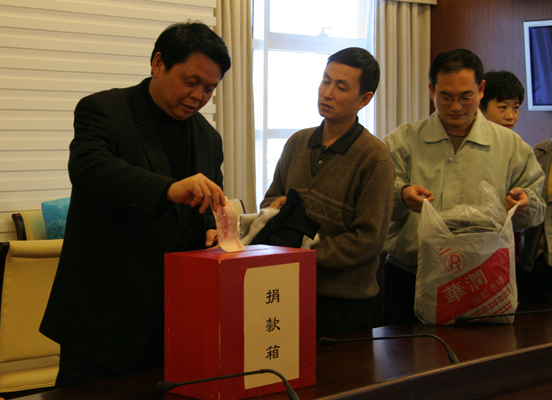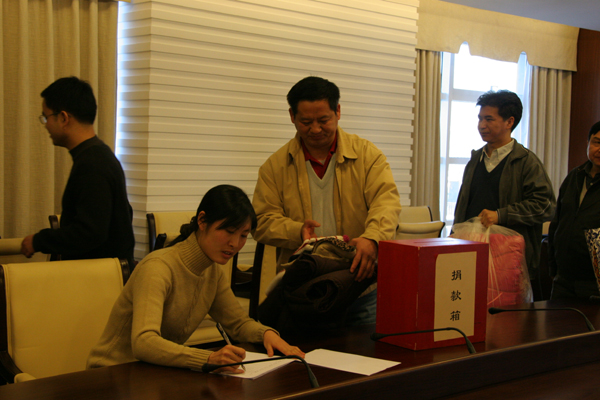 今年我國部分地區(qū)遭受地震、臺風、洪澇等嚴重自然災(zāi)害,給災(zāi)區(qū)群眾生產(chǎn)生活造成較大影響,部分城市低保戶、農(nóng)村貧困戶的生活也面臨一些困難。為此,中共中央總書記胡錦濤近日就在中央部門和單位開展送溫暖獻愛心活動做出重要批示,中共中央和國務(wù)院及時做出相關(guān)部署。九三學(xué)社中央立即發(fā)出通知,緊急動員,迅速布置。正在外地考察的全國人大常委會副委員長、九三學(xué)社中央主席韓啟德迅即打回電話帶頭捐款1000元。12月14日上午10時,九三學(xué)社中央機關(guān)第二會議室,寬大的投影幕布上顯示著“送溫暖 獻愛心”幾個醒目的大字。在《愛的奉獻》的樂曲聲中,九三學(xué)社中央常務(wù)副主席陳抗甫、副主席賀鏗、邵鴻,秘書長徐國權(quán)率先垂范,捐款捐物。九三學(xué)社中央機關(guān)工作人員及其所屬民主與科學(xué)雜志社、學(xué)苑出版社和學(xué)苑音像出版社的全體員工紛紛慷慨解囊,奉獻愛心。同志們或提或抱,把一件件洗得干干凈凈、包裹得整整齊齊的衣被送到捐助點,出差在外的同志委托他人送來捐款和衣物。大家踴躍捐款捐物,涌現(xiàn)出許多感人事跡。沈丙吉、王世義、沈燕錦等離退休老同志也冒著刺骨的寒風來到機關(guān)捐獻了款物。50元,100元,200元,500元……,一筆筆捐款、一件件棉衣、一床床被褥,凝結(jié)著九三學(xué)社中央及其所屬單位廣大干部職工的濃濃深情。截止到12月15日,九三學(xué)社中央機關(guān)共收到捐款7680元,棉衣被190件。