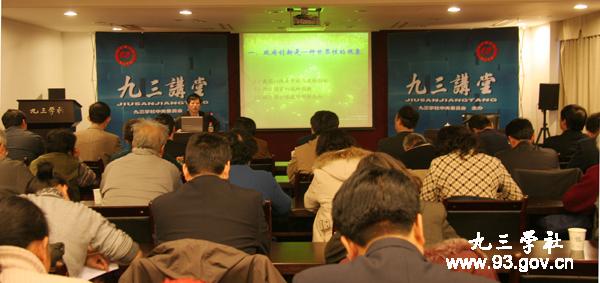 舉辦的九三講堂2008年首場開講。中共中央編譯局副局長俞可平教授作了題為“中國政府創(chuàng)新的過去與未來”的精彩報告。報告從政治改革、行政改革、公共服務(wù)等方面回顧了改革開放30年以來我國的政府創(chuàng)新與政治發(fā)展;分析了政府創(chuàng)新的動力,指出政府管理中存在的問題以及政府創(chuàng)新的目標,闡釋了政府創(chuàng)新的5個主要方向;對中共十七大報告中有關(guān)政治體制改革內(nèi)容進行了解讀。報告例舉大量生動事例,從政府創(chuàng)新切入,以具體可操作的角度闡述了中國在推進民主化過程中的重大理論與實踐問題,對民主黨派成員深入思考如何履行好參政議政、民主監(jiān)督職能,努力推進民主化進程有很大的教益。