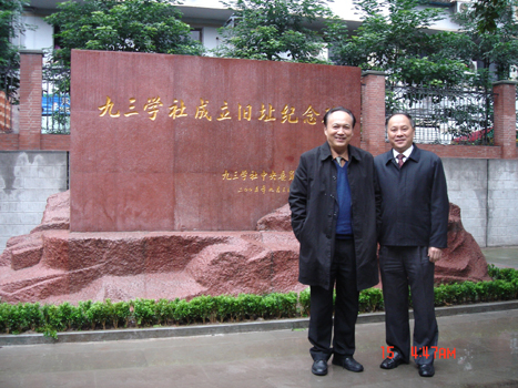 11月14日,來渝出席國家自然科學(xué)基金委員會數(shù)學(xué)天元基金學(xué)術(shù)領(lǐng)導(dǎo)小組擴大會議的九三學(xué)社中央副主席、九三學(xué)社四川省委主委劉應(yīng)明在九三學(xué)社重慶市委主委謝小軍、副主委陳義華等陪同下,冒雨參觀了九三學(xué)社成立舊址紀念碑。