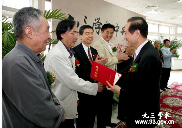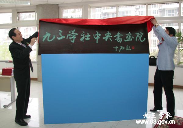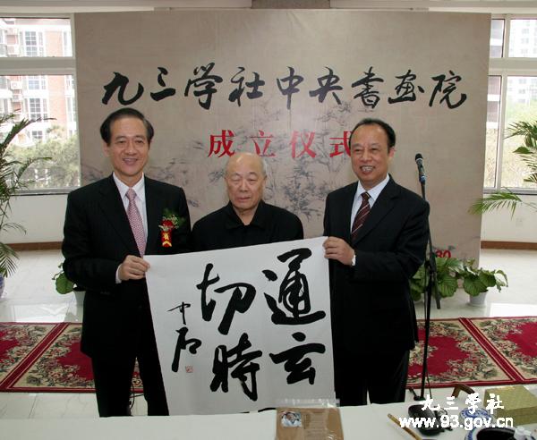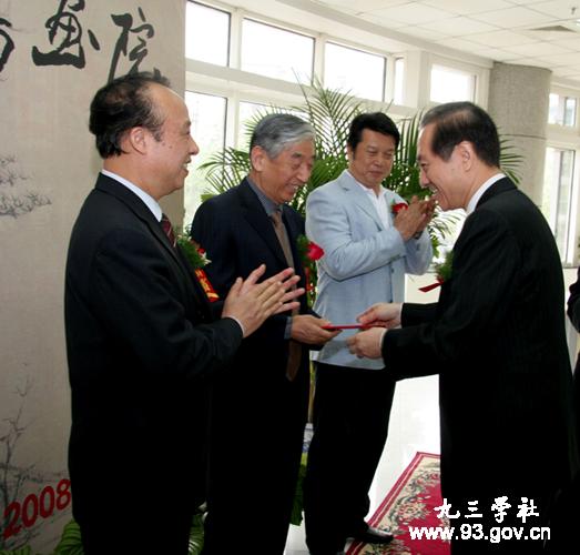 韓啟德與中國文聯(lián)黨組副書記、副主席覃志剛共為九三學(xué)社中央書畫院揭匾。匾名由著名書法家歐陽中石先生為九三學(xué)社中央書畫院題寫。