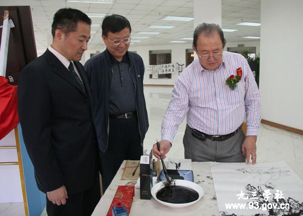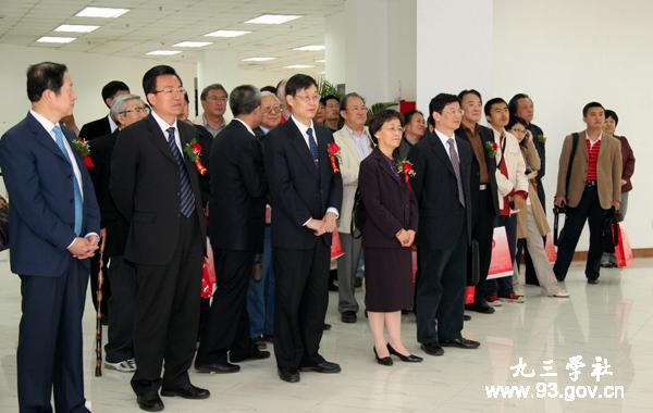 民盟中央副主席索麗生、農(nóng)工黨中央副主席汪紀(jì)戎、致公黨中央副主席李卓彬、全國工商聯(lián)副主席孫曉華、中國文聯(lián)黨組副書記、副主席覃志剛、中國書法家協(xié)會(huì)主席張海、中國書法家協(xié)會(huì)分黨組書記、駐會(huì)副主席趙長青,部分中國美協(xié)、中國書協(xié)的理事、名家,九三學(xué)社書畫家,九三學(xué)社中央機(jī)關(guān)各部門負(fù)責(zé)人等出席儀式。