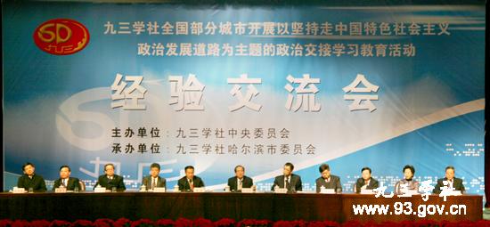 部分城市政治交接學(xué)習(xí)教育活動(dòng)經(jīng)驗(yàn)交流會(huì)在哈爾濱舉行。九三學(xué)社中央主席韓啟德出席會(huì)議并作重要講話。韓啟德從當(dāng)前若干國家的政治動(dòng)蕩談起,深刻闡述了九三學(xué)社開展以堅(jiān)持走中國特色社會(huì)主義政治發(fā)展道路為主題的政治交接學(xué)習(xí)教育活動(dòng)的重要意義,對(duì)如何進(jìn)一步推進(jìn)政治交接學(xué)習(xí)教育活動(dòng)提出了五個(gè)方面的要求:一是要認(rèn)真學(xué)習(xí)貫徹中共十七大精神,二是要認(rèn)真學(xué)習(xí)我社第九次全國代表大會(huì)精神,三是要學(xué)習(xí)社史和修改后的社章,四是要把政治交接學(xué)習(xí)教育活動(dòng)與我社各項(xiàng)工作緊密結(jié)合起來,五是要增強(qiáng)學(xué)習(xí)的自覺性,提倡好的學(xué)風(fēng)。九三學(xué)社中央副主席邵鴻總結(jié)了半年多來我社開展政治交接學(xué)習(xí)教育活動(dòng)的特點(diǎn):各級(jí)領(lǐng)導(dǎo)高度重視,建立了責(zé)任明確的領(lǐng)導(dǎo)體系;試點(diǎn)先行,帶動(dòng)全面;認(rèn)真制訂活動(dòng)方案、召開動(dòng)員大會(huì);深入學(xué)習(xí)貫徹中共十七大精神,推進(jìn)政治交接學(xué)習(xí)教育活動(dòng);將學(xué)習(xí)我社先進(jìn)人物、光榮歷史和優(yōu)良傳統(tǒng),作為政治交接學(xué)習(xí)教育活動(dòng)的重要內(nèi)容;