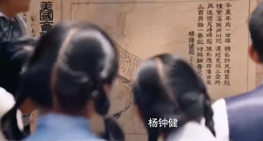 這是電影《無問西東》的截屏,畫面里那個站在恐龍面前的人、那個把恐龍帶回西南聯(lián)大的人,就是楊鐘健教授。