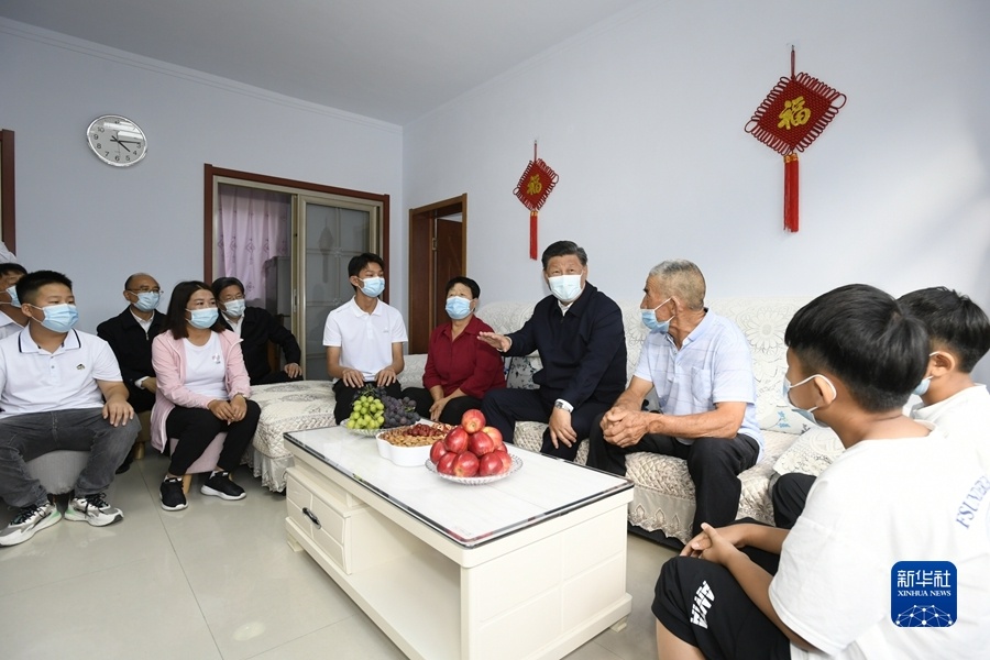 8月23日至24日,中共中央總書記、國家主席、中央軍委主席習近平在河北省承德市考察。這是24日下午,習近平在雙灤區(qū)偏橋子鎮(zhèn)大貴口村同村民霍金一家人親切交談。新華社記者 李學仁 攝