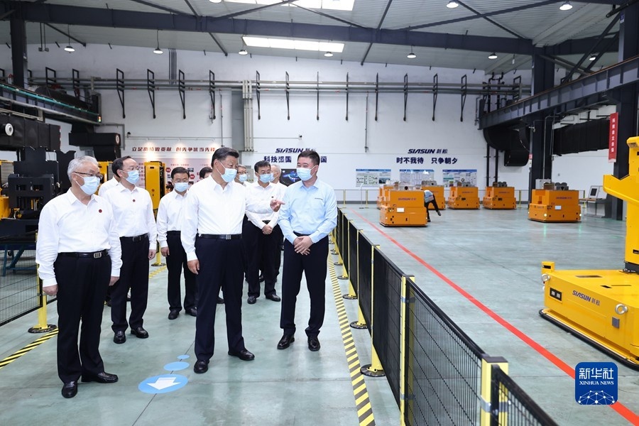 8月16日至17日,中共中央總書記、國家主席、中央軍委主席習近平在遼寧考察。這是17日下午,習近平在沈陽新松機器人自動化股份有限公司生產(chǎn)車間考察時,向技術人員和企業(yè)職工詢問企業(yè)開展核心技術攻關等情況。 新華社記者 姚大偉 攝
