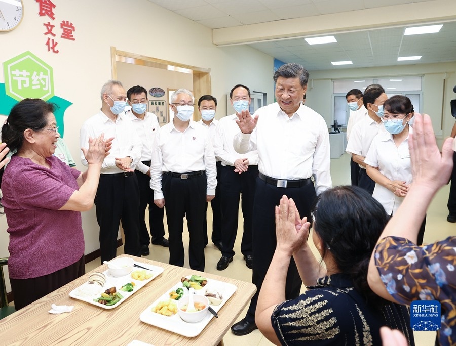 8月16日至17日,中共中央總書記、國家主席、中央軍委主席習近平在遼寧考察。這是17日下午,習近平在沈陽市皇姑區(qū)三臺子街道牡丹社區(qū)老年餐廳,同正在用餐的老人們親切交流。 新華社記者 鞠鵬 攝
