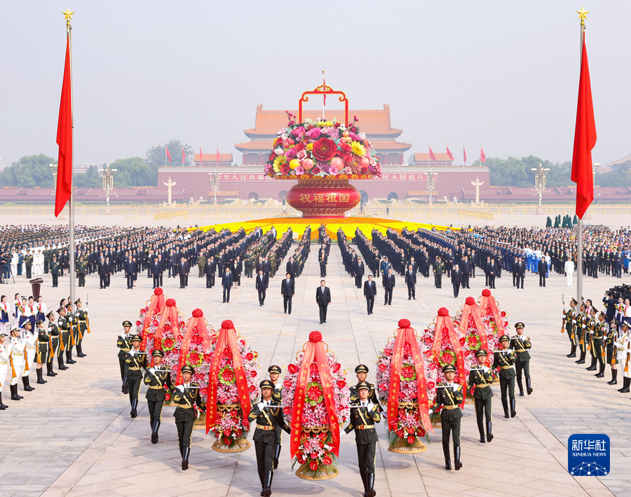 9月30日上午,黨和國家領(lǐng)導(dǎo)人習(xí)近平、李克強、栗戰(zhàn)書、汪洋、王滬寧、趙樂際、韓正、王岐山等來到北京天安門廣場,出席烈士紀念日向人民英雄敬獻花籃儀式。新華社記者 謝環(huán)馳 攝