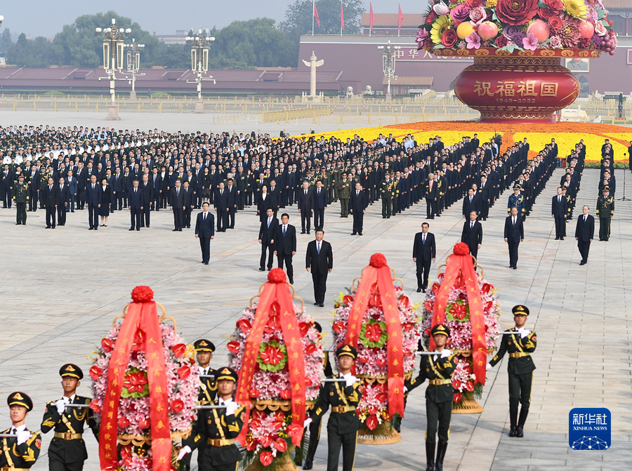 9月30日上午,黨和國家領(lǐng)導(dǎo)人習(xí)近平、李克強、栗戰(zhàn)書、汪洋、王滬寧、趙樂際、韓正、王岐山等來到北京天安門廣場,出席烈士紀念日向人民英雄敬獻花籃儀式。新華社記者 黃敬文 攝