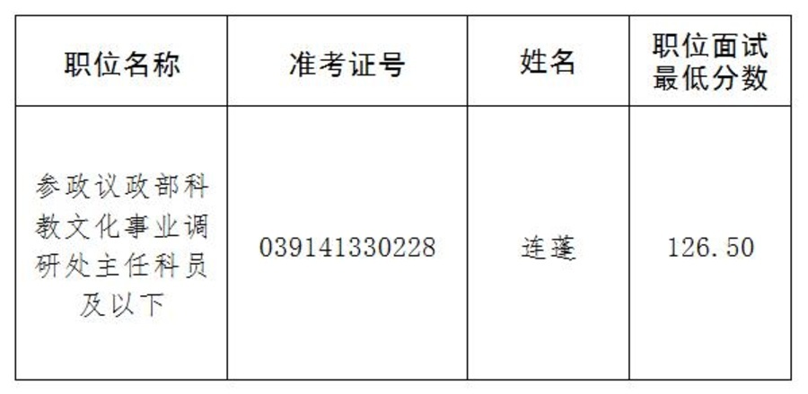 因有考生放棄面試資格,根據(jù)公務(wù)員招考有關(guān)規(guī)定,在筆試合格考生中,按照該職位筆試成績(jī)從高到低的順序,遞補(bǔ)以下考生為面試人選: