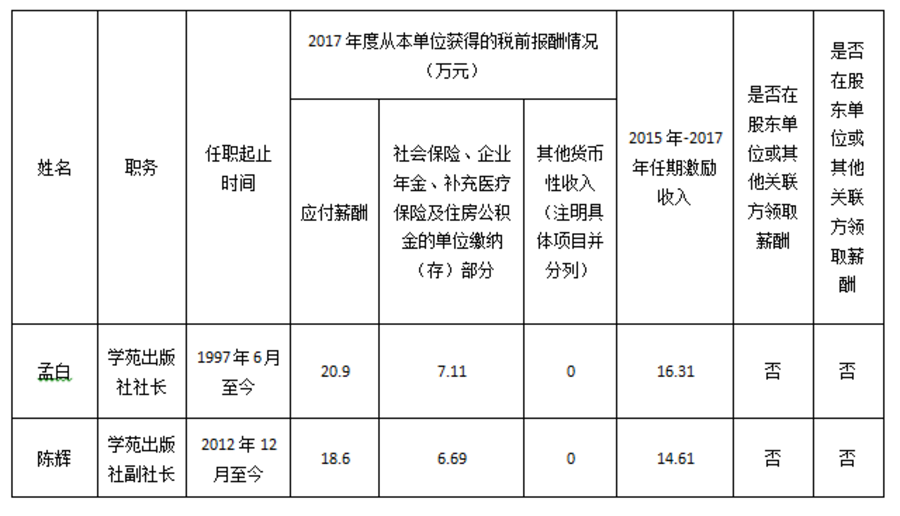 根據(jù)人力資源社會(huì)保障部關(guān)于中央企業(yè)負(fù)責(zé)人薪酬制度改革工作的有關(guān)要求,現(xiàn)將學(xué)苑出版社主要負(fù)責(zé)人2017年度薪酬情況公告如下: