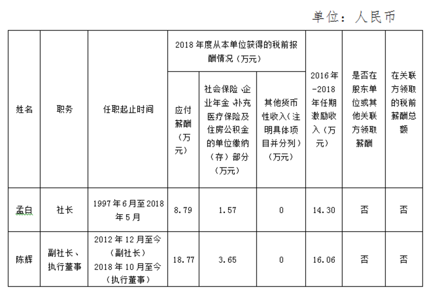 注:孟白2018年度薪酬計算時間為2018年1月至5月,任期激勵計算時間為2016年1月至2018年5月。