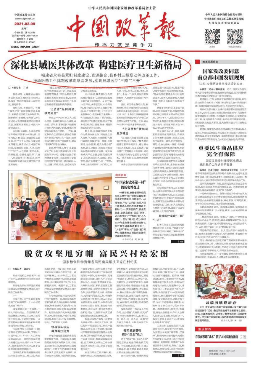 2021年2月9日,《中國改革報(bào)》在頭版頭條以“深化縣域醫(yī)共體改革 構(gòu)建醫(yī)療衛(wèi)生新格局”為題報(bào)道了福州市永泰縣醫(yī)藥衛(wèi)生體制改革的成效。永泰縣分管此項(xiàng)工作的副縣長正是九三學(xué)社社員魏秀惠。