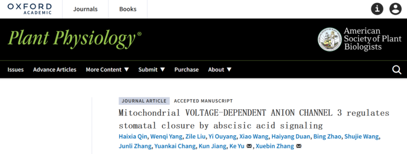 近日,九三學(xué)社河南大學(xué)第二支社委員會(huì)社員、河南大學(xué)作物逆境適應(yīng)與改良國(guó)家重點(diǎn)實(shí)驗(yàn)室張學(xué)斌教授團(tuán)隊(duì)在國(guó)際權(quán)威植物學(xué)雜志Plant Physiology發(fā)表了題為“Mitochondrial VOLTAGE-DEPENDENT ANION CHANNEL 3 regulates stomatal closure by abscisic acid signaling”的研究論文,揭示了一個(gè)線(xiàn)粒體定位的通道蛋白VDAC3參與ABA信號(hào)通路的組分對(duì)氣孔關(guān)閉的調(diào)控,被視為該領(lǐng)域的重要發(fā)現(xiàn)。