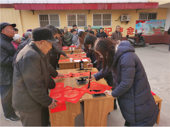 許昌支社副秘書長(zhǎng)李偉帶領(lǐng)帶領(lǐng)社員尚杰鋒(許昌市書法家協(xié)會(huì)副主席)等5位書法家,自帶筆墨紙張,走進(jìn)建安區(qū)李簡(jiǎn)社區(qū),將書法文化帶進(jìn)百姓生活中。
