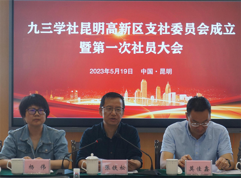 5月19日,九三學(xué)社昆明高新區(qū)支社委員會成立暨第一次社員大會在昆明高新區(qū)召開,九三學(xué)社云南省委會副主委、昆明市委會主委張鐵松,中共昆明高新區(qū)黨工委委員、黨群工作部部長莫佳鑫出席會議并講話,九三學(xué)社昆明市委會專職副主委楊偉主持會議,張若鵬代表九三學(xué)社昆明高新區(qū)支社領(lǐng)導(dǎo)班子作表態(tài)發(fā)言。