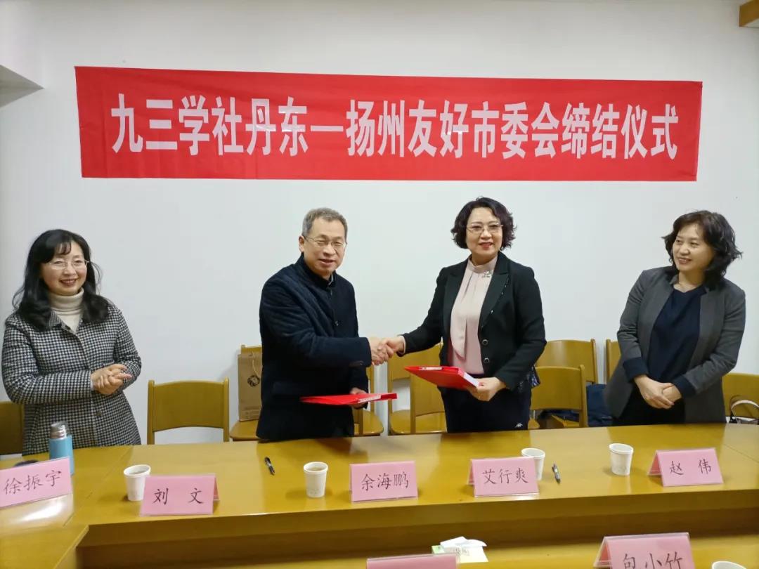 3月22日,九三學(xué)社揚(yáng)州市委與九三學(xué)社丹東市委在揚(yáng)州市舉行締結(jié)友好市委會(huì)簽約儀式。社揚(yáng)州市委主委余海鵬與社丹東市委主委艾行爽分別代表兩地九三學(xué)社組織在協(xié)議上簽字。