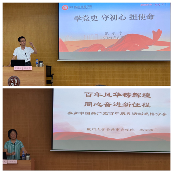 讀書班期間,學(xué)員們認(rèn)真學(xué)習(xí)了習(xí)近平總書記“七一”重要講話、習(xí)近平總書記在黨史學(xué)習(xí)教育動(dòng)員大會(huì)上的講話,以及中共廈門市委書記趙龍?jiān)谌悬h史學(xué)習(xí)教育動(dòng)員大會(huì)上的講話精神等。學(xué)員們還認(rèn)真聆聽了廈門市紀(jì)委監(jiān)委辦公廳原主任、廈門城市黨建學(xué)院客座教授張永才作的《學(xué)黨史 守初心 擔(dān)使命》黨史學(xué)習(xí)教育專題講座,張主任聲情并茂的報(bào)告感染了在場的每一個(gè)社員;廈門大學(xué)公共事務(wù)學(xué)院教授李明歡以參加慶祝中國共產(chǎn)黨成立一百周年大會(huì)的親身經(jīng)歷,從不同視角講述了慶祝大會(huì)的隆重?zé)崃摇⒕芙M織、科學(xué)安排,以及所體現(xiàn)的中國共產(chǎn)黨強(qiáng)大的動(dòng)員力、組織力、號召力和凝聚力。