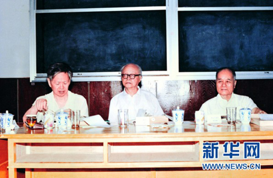 程開(kāi)甲(右)與王淦昌(中)、呂敏(左)一起參加會(huì)議。新華社發(fā)(總裝備部供圖)