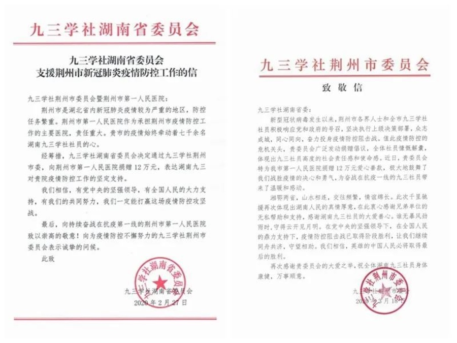 3月18日,九三學(xué)社荊州市委向社湖南省委發(fā)出《致敬信》。