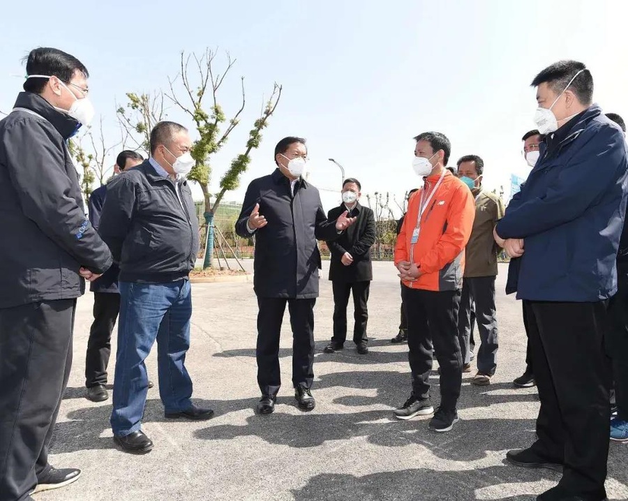 武漢雷神山醫(yī)院,省委常委、市委書記王忠林帶隊一行看望慰問奮戰(zhàn)一線的醫(yī)務工作者及后勤保障人員,梁鳴(左一)在現(xiàn)場 (圖片來源:長江日報微信公眾號)