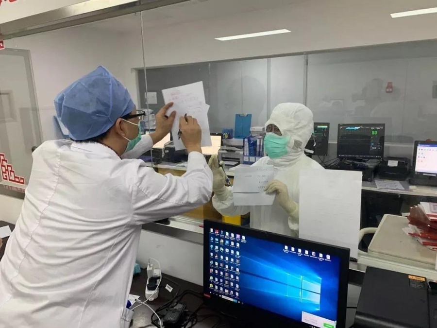對于羅亮來說,沒有上下班的概念。他24小時(shí)在醫(yī)院,早交班、查房、會(huì)診、討論病情……他的一天工作排得滿滿當(dāng)當(dāng)。新冠肺炎沒有現(xiàn)成的經(jīng)驗(yàn),他不僅全面負(fù)責(zé)所有重癥患者的治療,而且還要迎難而上,挑燈夜戰(zhàn),每天晚上在醫(yī)生辦公室研究患者胸部影像學(xué)資料以及當(dāng)日數(shù)據(jù)。常常深夜,剛準(zhǔn)備休息,接到病房會(huì)診電話,他立刻趕到隔離病房,與當(dāng)班醫(yī)生一起處理病情。他每天的睡眠時(shí)間只有五個(gè)小時(shí)。玻璃兩側(cè),是羅亮和戰(zhàn)友們抗擊疫情傳遞信息“緘默的溝通”。