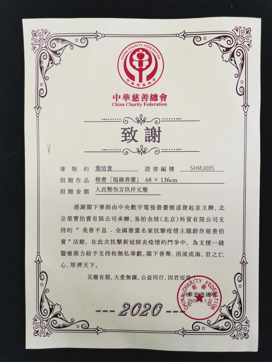 《福緣善慶》,書畫頻道和榮寶齋義賣書法是葉培貴教授所從事的專業(yè),詩詞也是他的兼擅。初步統(tǒng)計,從1月25日至4月19日,他為抗疫工作創(chuàng)作了大約50件書法作品,寫作了表達抗疫情感的舊體詩(含聯(lián)句)43首,詩書也成為他的抗疫利器。