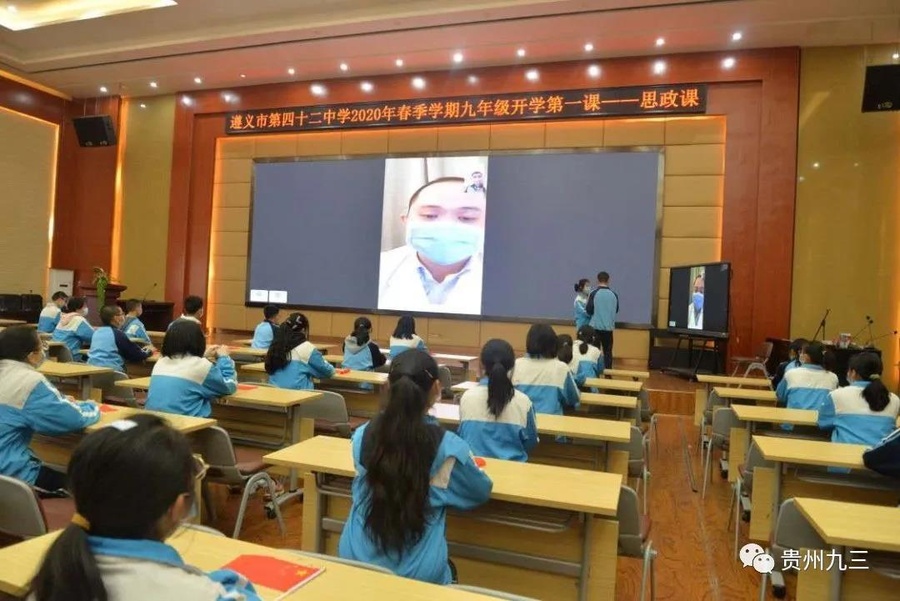 3月16日,遵義市第四十二中學(xué)以班級(jí)為單位召開(kāi)了關(guān)于新冠肺炎疫情的開(kāi)學(xué)第一課。這次主題班會(huì)的第二個(gè)環(huán)節(jié)是:《我心中的英雄——最美逆行者》,通過(guò)網(wǎng)絡(luò)視頻連線身在湖北鄂州前線抗“疫”的九三學(xué)社社員、貴州省第六批援鄂醫(yī)療隊(duì)隊(duì)員、遵義醫(yī)科大學(xué)附屬醫(yī)院胸外科副主任醫(yī)師、在讀醫(yī)學(xué)博士陳成。與千里之外的遵義家鄉(xiāng)孩子們見(jiàn)面,陳成為學(xué)子們現(xiàn)身講述白衣逆行者的故事,鼓勵(lì)同學(xué)們樹(shù)立遠(yuǎn)大理想,熱愛(ài)偉大祖國(guó),勇于砥礪奮進(jìn),以行動(dòng)為中國(guó)的明天注入力量。