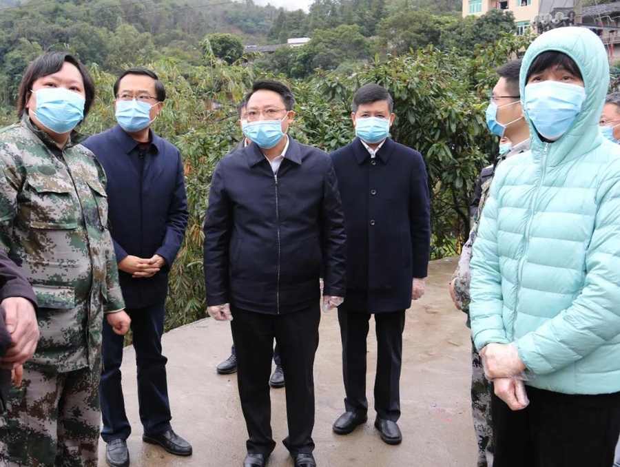 蔡國萍(右一)陪莆田市委書記、市長到重點疫區(qū)調研新冠肺炎疫情防控工作