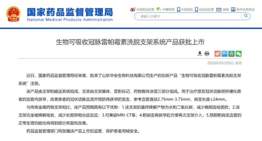 由九三學(xué)社上海市委副主委、中國(guó)科學(xué)院院士葛均波教授領(lǐng)銜的XINSORB生物可吸收支架研發(fā)團(tuán)隊(duì),歷經(jīng)十余年研發(fā)、科研攻關(guān)及臨床研究隨訪,全國(guó)首款具有中國(guó)自主知識(shí)產(chǎn)權(quán)的雷帕霉素洗脫生物可吸收支架——XINSORB支架,于昨日通過(guò)國(guó)家藥品監(jiān)督管理局審批上市。