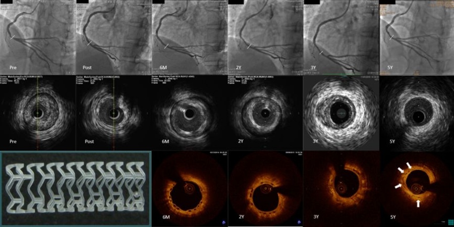 接受XINSORB生物可吸收支架治療的第一例患者至今已完成5年隨訪。5年來(lái),該患者未發(fā)生任何不良事件,多次復(fù)查造影均顯示原支架植入部位通暢,支架已幾乎完全吸收(Wu Y, et al. J Am Coll Cardiol Intv. 2019,12:602-603.)。