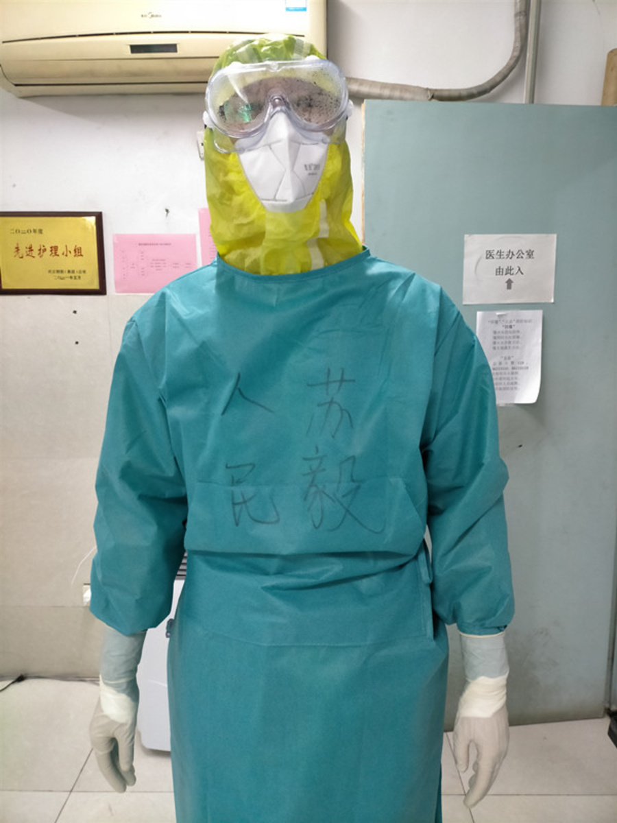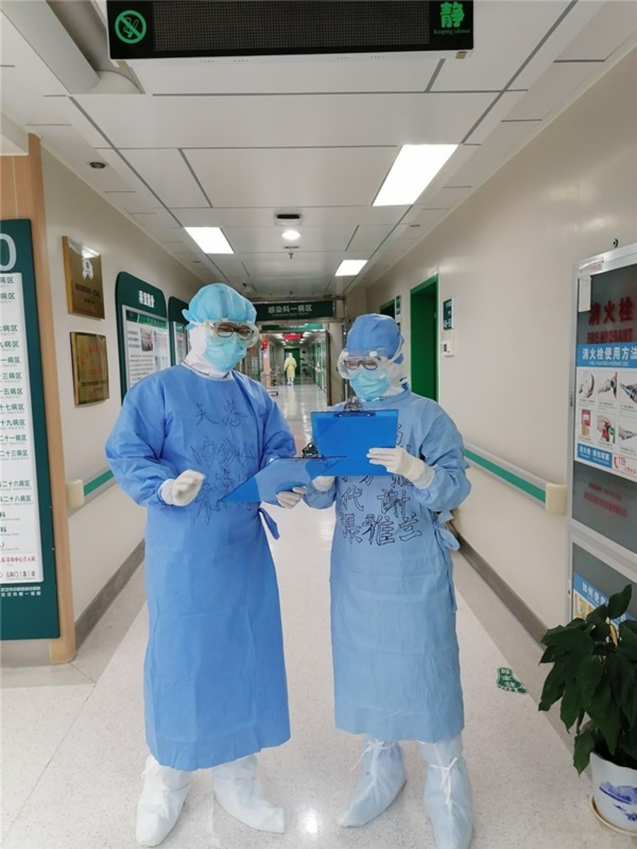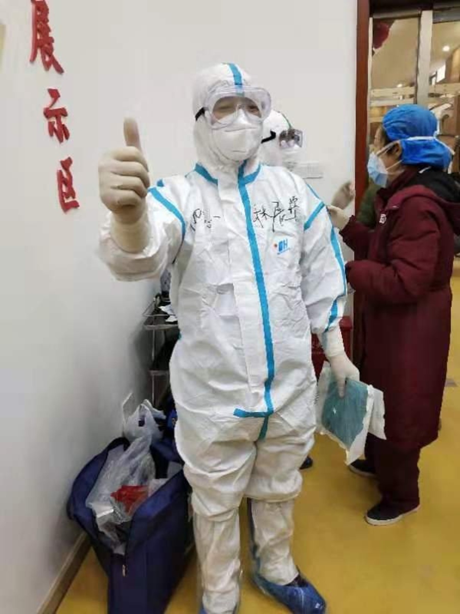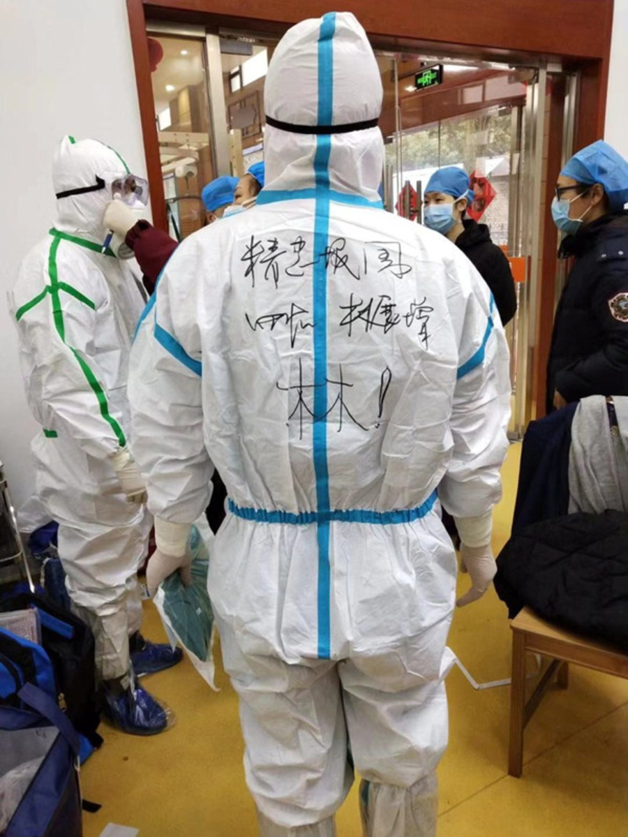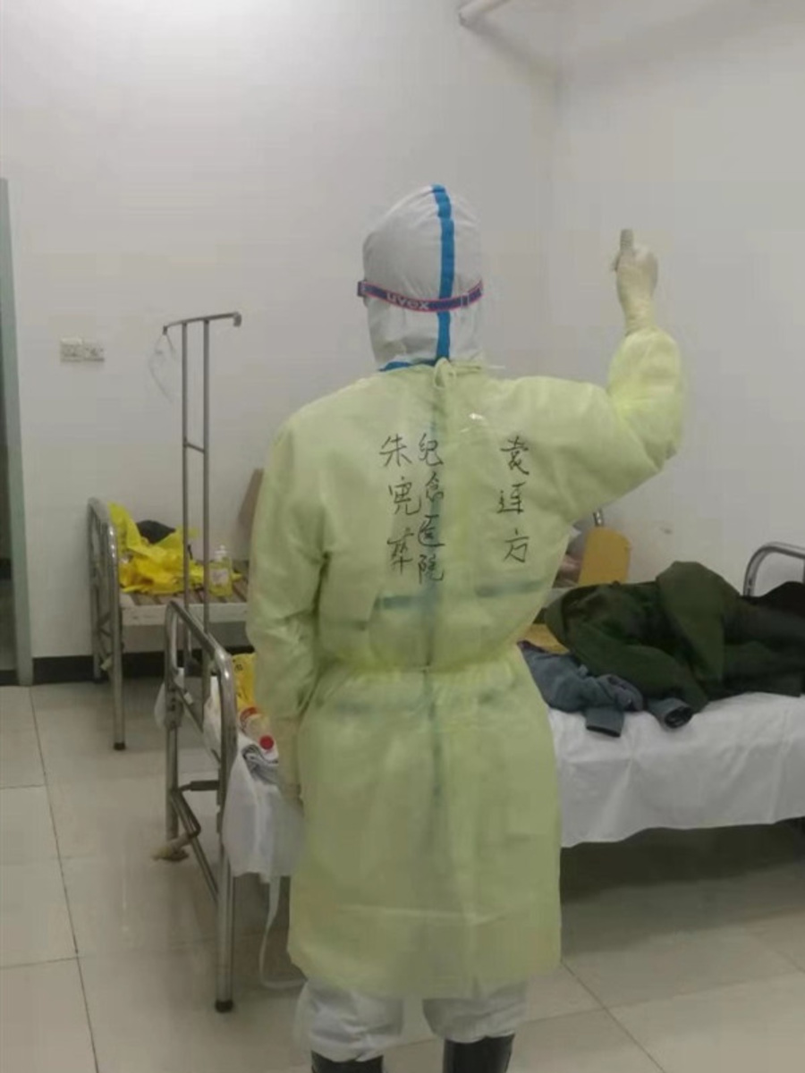 在對口支援的武鋼二院,你主動請纓,第一批進(jìn)入紅區(qū),在防護(hù)服上寫下醒目的四個大字“精忠報國”。