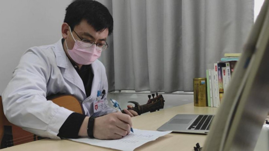 王佳佳出征之前為一線戰(zhàn)“疫”勇士譜寫歌曲《逆行的身影》