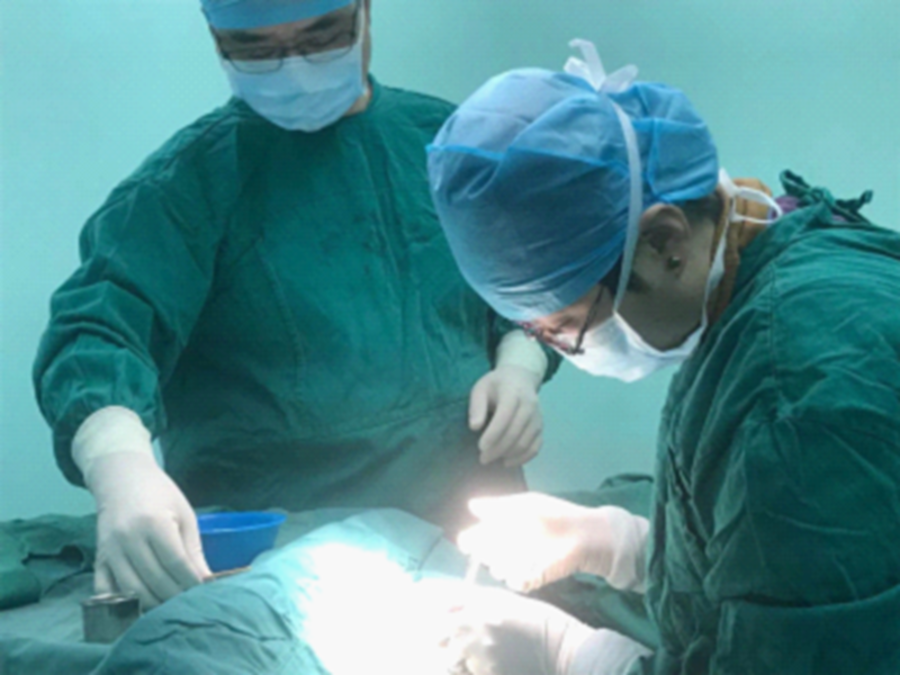 廣州市花都區(qū)委員會(huì)社員、花都區(qū)人民醫(yī)院醫(yī)生朱春玲(右一)在手術(shù)室為患者做手術(shù)