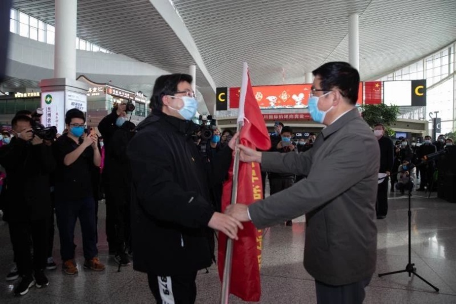 2月19日,王琛作為第五批甘肅省援助湖北醫(yī)療隊(duì)隊(duì)長,率隊(duì)馳援武漢。王琛是甘肅馳援武漢的首位三級(jí)甲等醫(yī)院院長。王琛代表醫(yī)療隊(duì)鄭重表示,打贏這場疫情防控人民戰(zhàn)爭總體戰(zhàn)阻擊戰(zhàn),作為白衣戰(zhàn)士必須沖鋒在前、不畏艱險(xiǎn)、盡忠職守。我們將不辱使命、不負(fù)重托,以昂揚(yáng)的斗志和飽滿的熱情全力以赴投入到湖北疫情防控第一線,并確保全體隊(duì)員逆行出征、平安歸來。
