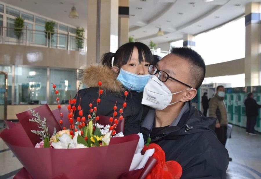 2月19日,張韶橘隨第五批甘肅省援助湖北醫(yī)療隊(duì)馳援武漢。從年前至今,張韶橘已經(jīng)在發(fā)熱門診抗疫第一線連續(xù)奮戰(zhàn)了整整一個(gè)月。在定西市舉行的出征儀式上,同在一個(gè)醫(yī)院工作的妻子帶著女兒涵涵前來為他送行,張韶橘一把將女兒抱在懷中,依依不舍地叮囑:“聽媽媽的話,等著爸爸回來。爸爸給你和媽媽獻(xiàn)上最美的花束。”