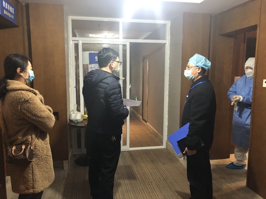 楊力銘(左一)在集中隔離點(diǎn)開(kāi)展工作