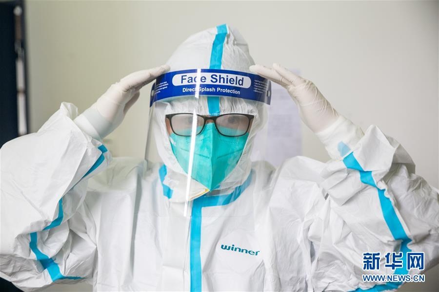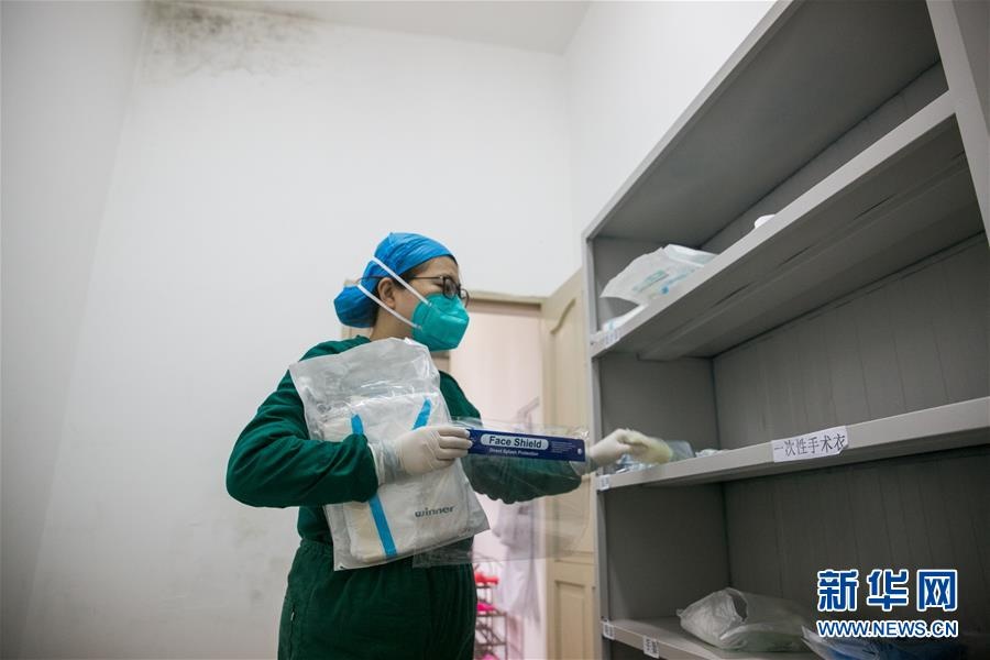1月27日,在貴州省畢節(jié)市第三人民醫(yī)院感染科,黃迪準(zhǔn)備穿戴防護(hù)服