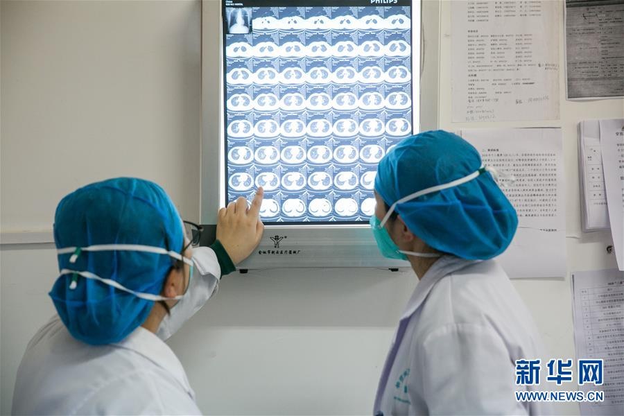 1月27日,在貴州省畢節(jié)市第三人民醫(yī)院感染科,黃迪(左)和同事查看病人的肺部影像資料