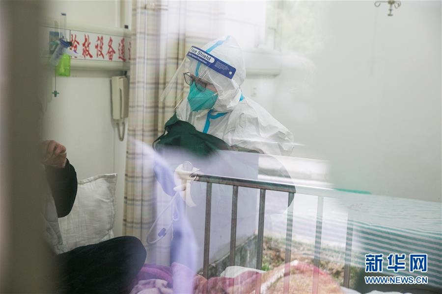 1月27日,在貴州省畢節(jié)市第三人民醫(yī)院感染科,黃迪為隔離區(qū)的病人做肺部檢查