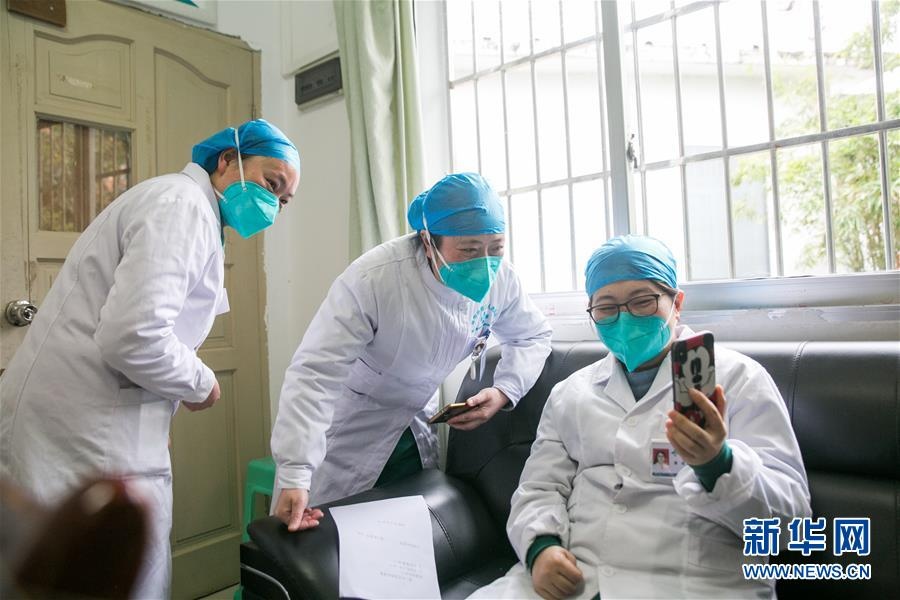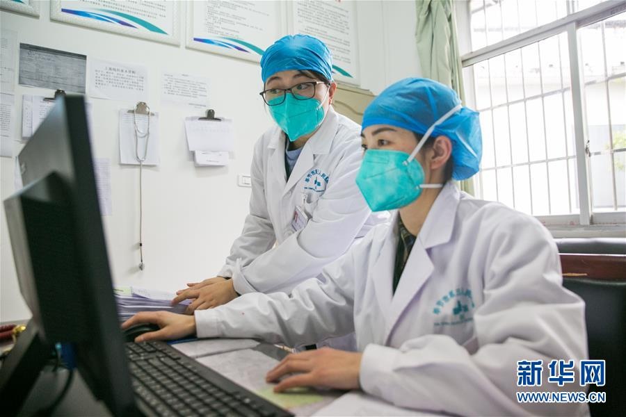 1月27日,在貴州省畢節(jié)市第三人民醫(yī)院感染科,黃迪(左)在和同事討論病人的康復(fù)狀況